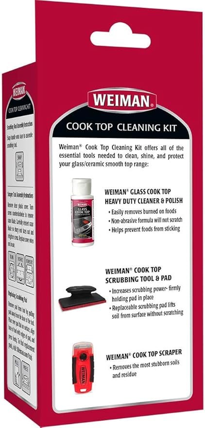 The Weiman Complete Cook Top Cleaning Kit is an all-in-one solution designed to clean, shine, and protect glass, ceramic, and induction cooktop surfaces.
